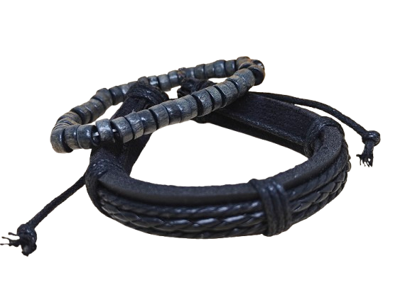 Αναβάθμισε το στυλ σου με αυτό το σετ 2 αντρικών βραχιολιών σε μοντέρνο, urban χαρακτήρα. Το πρώτο βραχιόλι διαθέτει γκρι χάντρες, που χαρίζουν industrial αισθητική και ελαφριά αίσθηση στον καρπό. Το δεύτερο είναι φτιαγμένο από μαύρη δερματίνη με ανάγλυφο πλεχτό σχέδιο, προσφέροντας πιο τολμηρή και στιβαρή εμφάνιση.