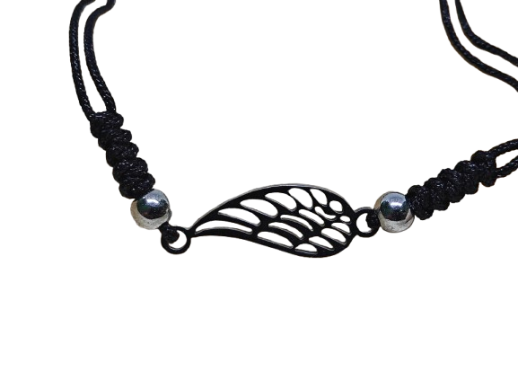 Στυλ και ενέργεια στην καθημερινότητά σας με το χειροποίητο βραχιόλι μακραμέ με φτερό αγγέλου. Το φτερό, κατασκευασμένο από ανοξείδωτο ατσάλι, συμβολίζει προστασία, ελπίδα και ελευθερία.