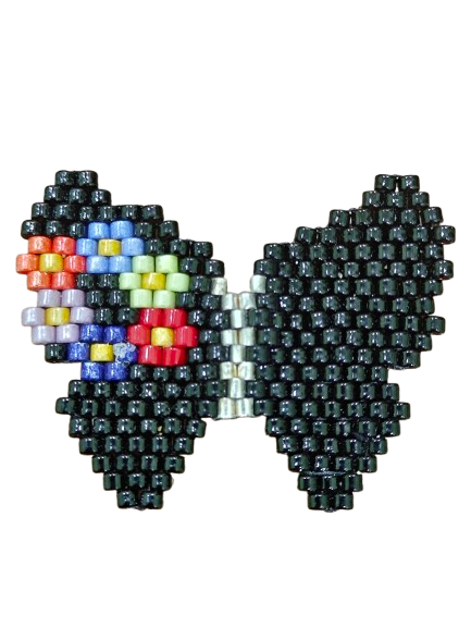 Η καρφίτσα Miyuki Πεταλούδα γεμίζει την εμφάνισή σου με χρώμα και ενέργεια. Δημιουργώ το μοτίβο στο χέρι με τη τεχνική peyote, ώστε κάθε σειρά να παραμένει σταθερή και καθαρή. Οι χάντρες Miyuki Delica δίνουν ομοιομορφία και ακρίβεια. Έτσι, το σχέδιο αποκτά ζωντανή υφή και έντονη λεπτομέρεια.