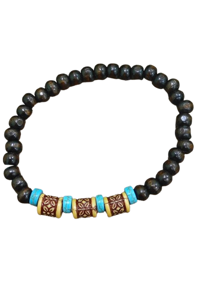 Αναδεικνύει τη φύση και τον χαρακτήρα! Το χειροποίητο αντρικό ξύλινο βραχιόλι με tribal λεπτομέρειες σε γήινους και τυρκουάζ τόνους προσφέρει αυθεντικό ethnic στυλ, ιδανικό για εναλλακτικές ή ταξιδιωτικές εμφανίσεις.