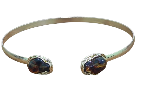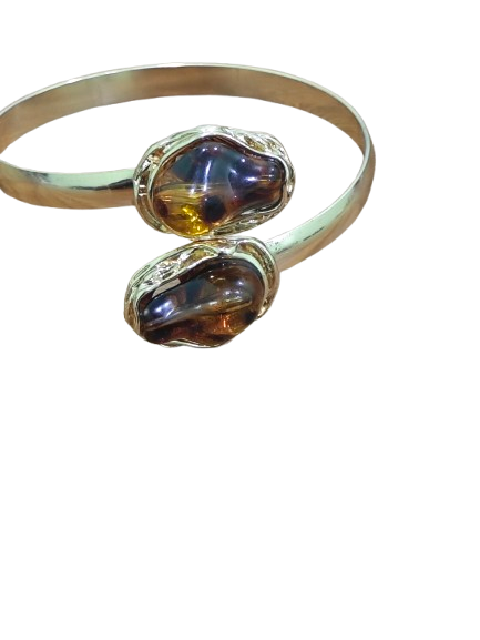 Δώσε στο στυλ σου καλλιτεχνική λάμψη με αυτό το χειροποίητο σετ κοσμημάτων. Περιλαμβάνει μεταλλικό περιδέραιο και βραχιόλι, και τα δύο ανοιχτού τύπου για άνετη εφαρμογή. Στις άκρες τους, δύο γυάλινες πέτρες σε καλλιτεχνικό σχήμα προσθέτουν ζωντανά χρώματα και μοναδικότητα.