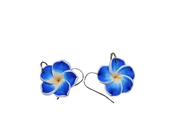 Αναδείξτε τη φρεσκάδα και τη γοητεία σας με τα Σκουλαρίκια Λουλούδι Μπλε από Πολυμερή Πηλό. Χειροποίητα και μοναδικά, αυτά τα κοσμήματα έχουν σχήμα εξωτικού λουλουδιού plumeria, συμβόλου ομορφιάς και αναγέννησης.