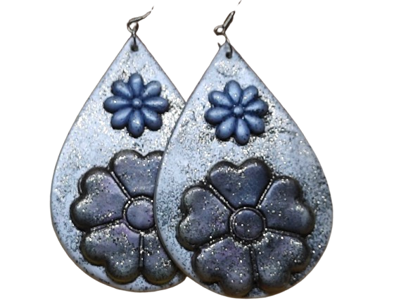 Αναδεικνύω τη ρομαντική πλευρά σου με τα Σκουλαρίκια Δάκρυ. Τα έφτιαξα από πολυμερικό πηλό και τα διακόσμησα με ανάγλυφα λουλούδια. Το σχέδιο αποπνέει φινέτσα, γοητεία και φυσική αρμονία.