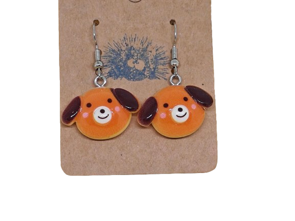 Φορέστε το χαμόγελο με τα σκουλαρίκια σκυλάκια από πολυμερή πηλό, ένα κόσμημα γεμάτο χαρά και γλυκύτητα. Το σχέδιο απεικονίζει ένα χαρούμενο κουτάβι με καφέ αυτάκια και ροδαλά μαγουλάκια, ιδανικό για όσους λατρεύουν τα ζώα και το χιουμοριστικό στυλ.