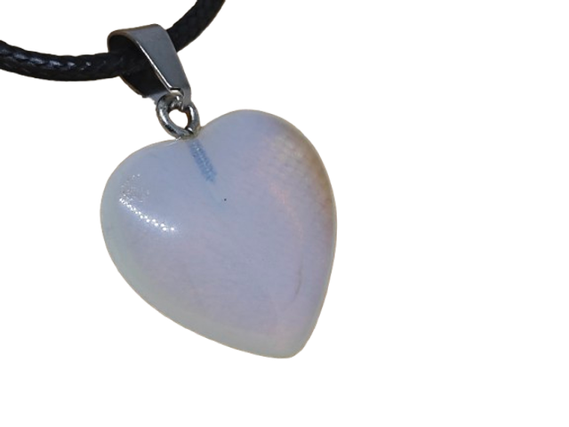 Φυσική φεγγαρόπετρα σε σχήμα καρδιάς. Ενισχύει τη διαίσθηση, προσφέρει συναισθηματική ισορροπία και προστασία. Φοριέται ως φυλαχτό καθημερινά ή σε πνευματικές πρακτικές.