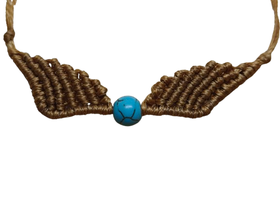 Χειροποίητο Βραχιόλι Μακραμέ Χρυσά Φτερά & Χαολίτη