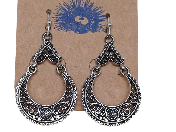 Boho σκουλαρίκια σε αντικέ ασημί με σχέδιο δαντέλας. Ελαφριά, κομψά και ιδανικά για κάθε μέρα ή ξεχωριστές εμφανίσεις.