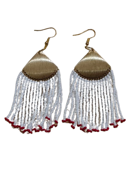 Τα σκουλαρίκια Boho Breeze είναι το απόλυτο καλοκαιρινό κόσμημα με έθνικ διάθεση και κίνηση. Η βάση από ορείχαλκο προσδίδει κομψότητα και σταθερότητα, ενώ τα λευκά γυάλινα κρόσσια με κόκκινη άκρη δημιουργούν ένα ζωηρό αποτέλεσμα.