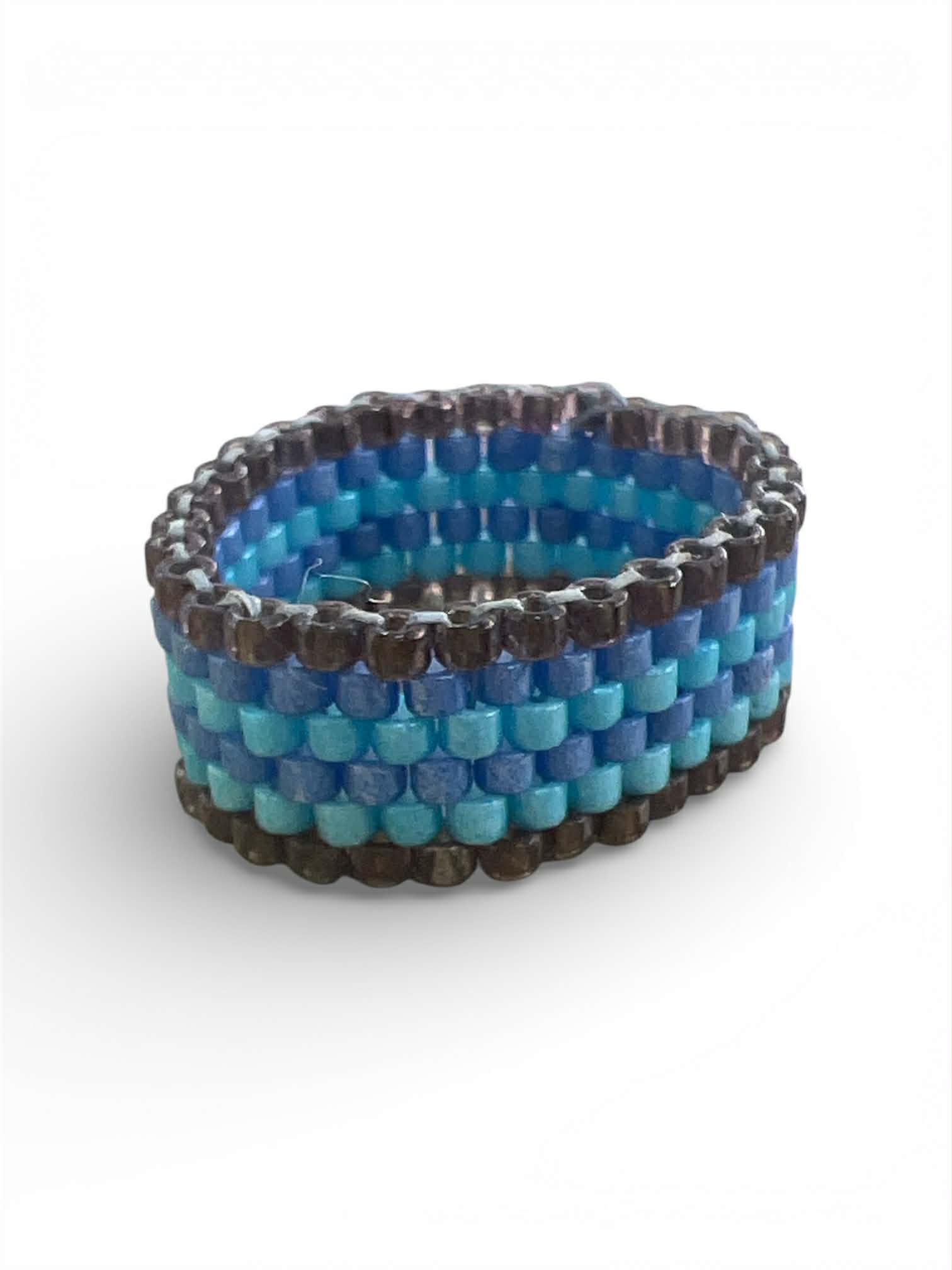 Το δαχτυλίδι Miyuki Peyote σε μπλε αποχρώσεις προσθέτει χρώμα και κομψότητα σε κάθε εμφάνιση. Δημιουργώ το δαχτυλίδι με γνήσιες χάντρες Miyuki Delica, γνωστές για την υψηλή ποιότητα και την απόλυτη ομοιομορφία τους. Η τεχνική peyote δίνει σταθερή δομή και άνετη εφαρμογή.