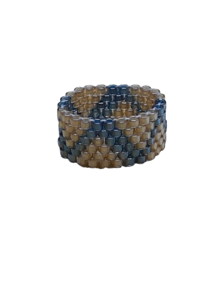 Χρησιμοποιώ Miyuki Delica χάντρες σε μπεζ και μεταλλικό γαλάζιο.