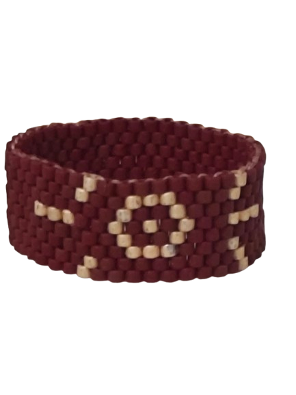 Ένα ξεχωριστό χειροποίητο δαχτυλίδι φτιαγμένο με χάντρες Miyuki Delica 11/0 σε καφέ χρώμα, διακοσμημένο με σχέδιο ήλιου σε μπεζ απόχρωση. Το μοτίβο του ήλιου συμβολίζει τη δύναμη, την ενέργεια και την αναγέννηση, κάνοντας το δαχτυλίδι όχι μόνο ένα κομψό κόσμημα αλλά και ένα φυλαχτό γεμάτο νόημα.